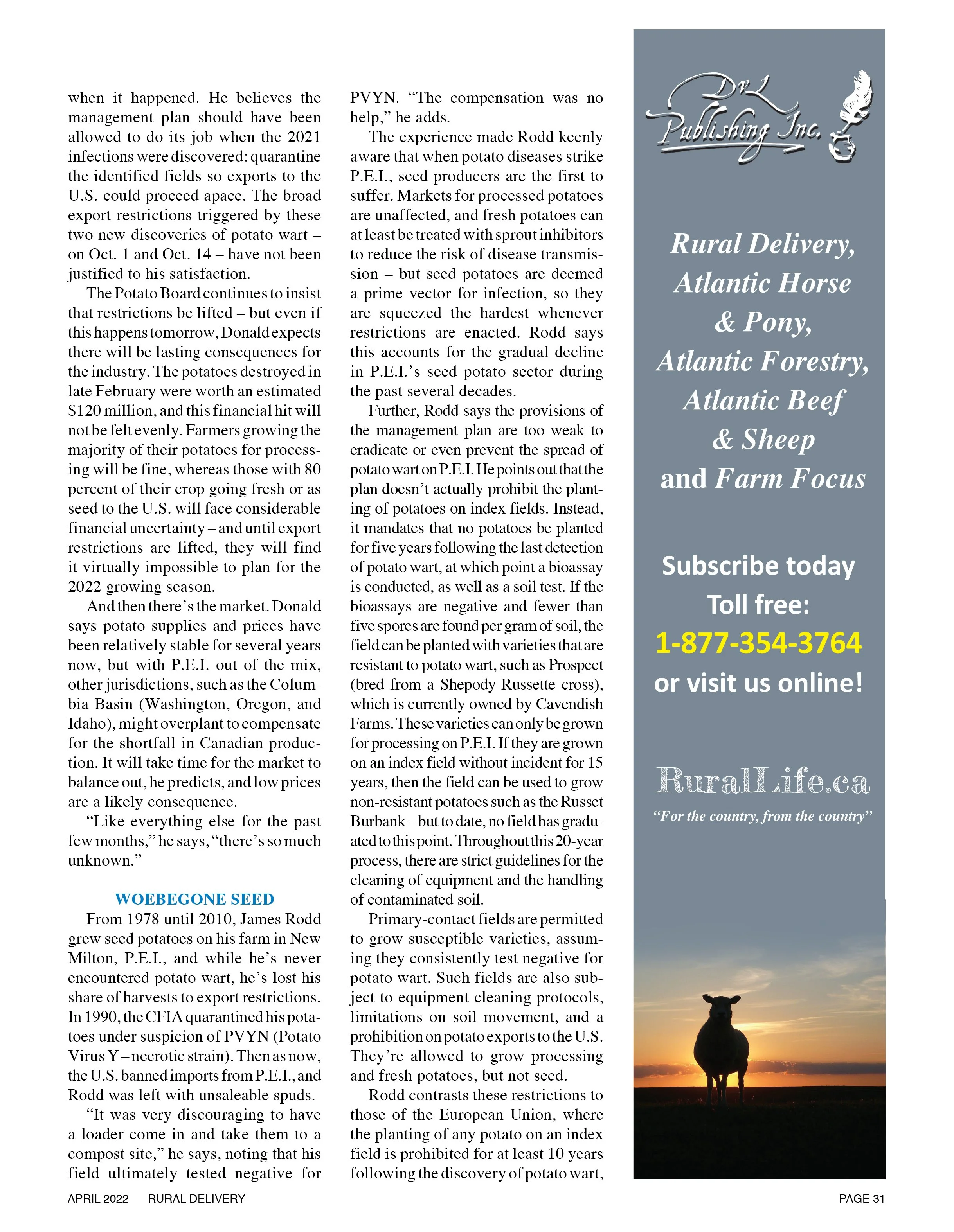 WE'RE A SITE PRODUCED SPECIFICALLY FOR (AND BY) PEOPLE LIVING AND WORKING IN ATLANTIC CANADA'S RURAL COMMUNITIES. RURALLIFE.CA IS FOR THOSE WHO GET THEIR HANDS DIRTY ON THE FARM, IN THE WOODLOT, OR IN THE BACKYARD GARDEN. WE'RE A RESOURCE, A VOICE, AND A SOURCE OF NEWS. EXPLORE, AND ENJOY. DVL